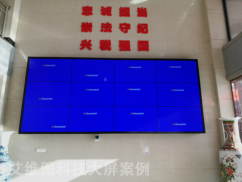 河南省洛陽市蒿縣稅務局位于地址:河南省洛陽市嵩縣金城北路房地產交易市場1層東南方向120米,本次采購的是我司46寸LCD液晶拼接屏,總共12塊,采用壁掛式掛墻液壓支架,帶包邊的安裝方式,于近日安裝交付使用,非常感謝客戶信任與支持。辛苦了,技術安裝部門的小伙伴。如果您此產品感興趣的話,請直接撥打廠家直銷熱線:134 3053 4393(微信同號)