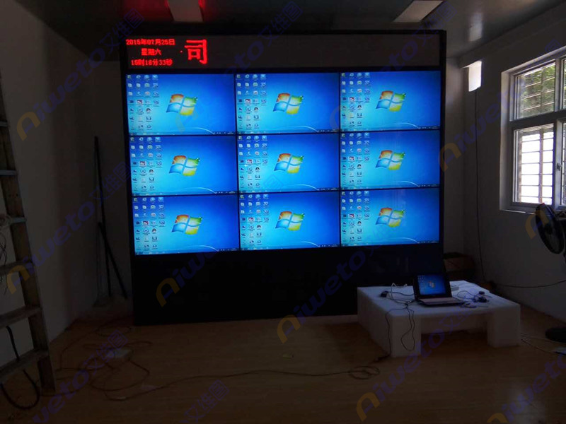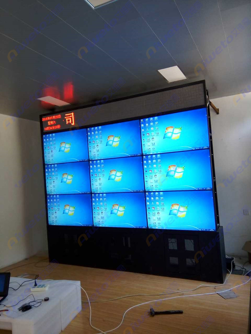 通過對(duì)客戶使用需求和部署環(huán)境的認(rèn)真研究和考察,Aiweto(艾維圖)科技工程師給出了多套相關(guān)解決方案,最終選用了由9臺(tái)(Aiweto) 46寸液晶拼接單元組成的3×3大屏幕液晶拼接墻。(Aiweto) 46寸液晶拼接單元是艾維圖科技推出的一款超窄邊液晶拼接顯示器,采用工業(yè)級(jí)面板,采用先進(jìn)的集成處理芯片,性能穩(wěn)定,運(yùn)動(dòng)圖像補(bǔ)償?shù)泉?dú)有的先進(jìn)技術(shù),有效的保證了輸出圖像的效果,支持7×24小時(shí)開機(jī),拼接邊縫小,適合大屏液晶拼接項(xiàng)目應(yīng)用。