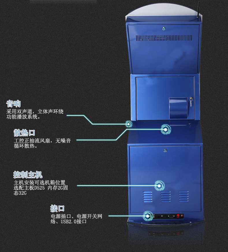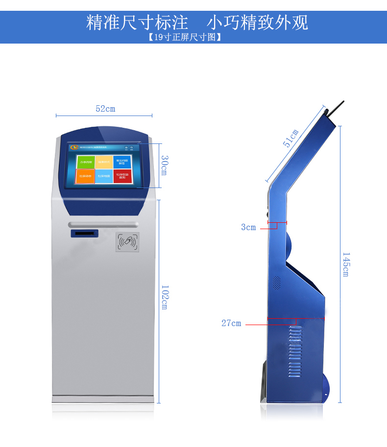 人體機學(xué)造型設(shè)計:人性化機型設(shè)計,符合人體站立姿態(tài)使用機器及視覺查看屏幕的最佳角度貼心細節(jié)設(shè)計,只為您使用更便捷。